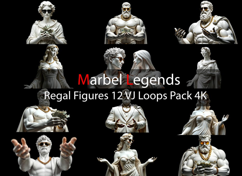 Marble Legends: Regal Figures 12 VJ Loops pack 4K 40 sec each